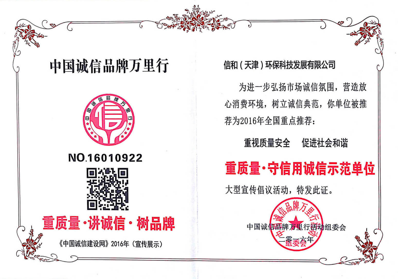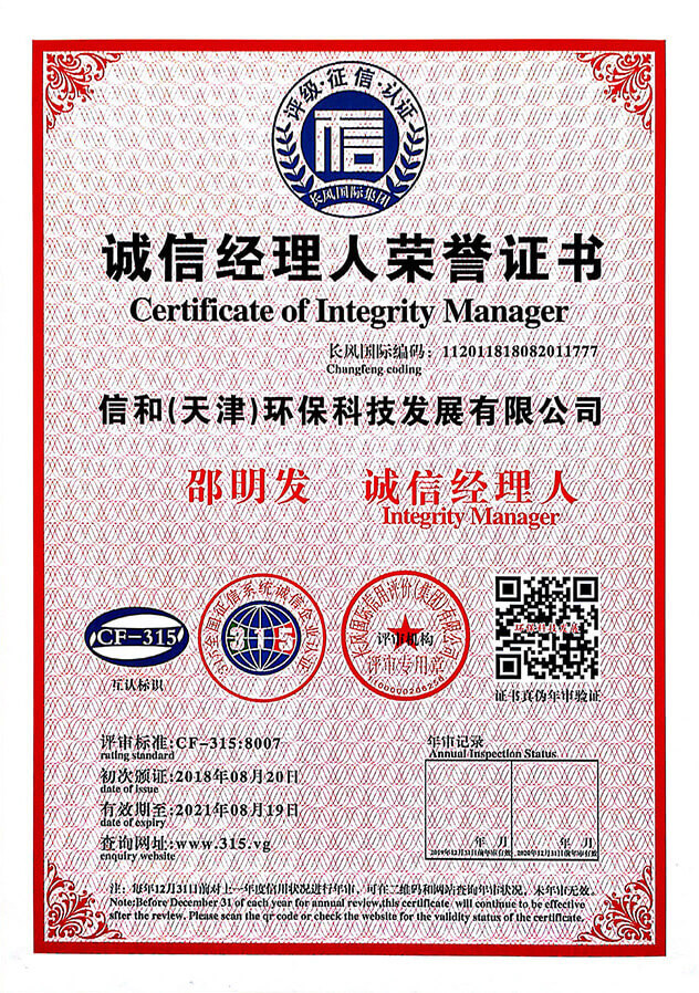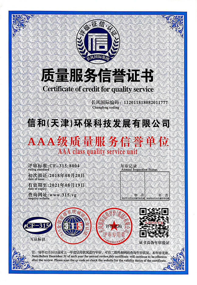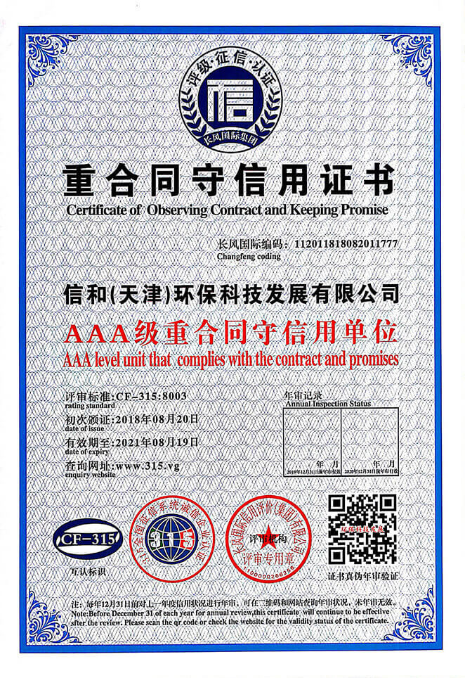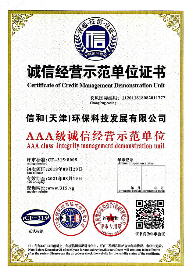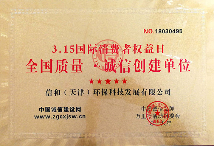 “質量就是生命”。信和重質量、守信用,被中國誠信品牌萬里行推薦“誠信示范單位”、“AAA資信等級”、“AAA級誠信經營示范單位”、“誠信經理人榮譽證書”、“誠信企業家榮譽證書”、“中國產品質量放心達標企業”、“誠信品牌聯盟會員單位”、“中國質量誠信AAA級品牌企業”、“中國百強優(yōu)秀企業”、“節(jié)能環(huán)保推廣產品”、“全國科技創新企業”等榮譽稱號。